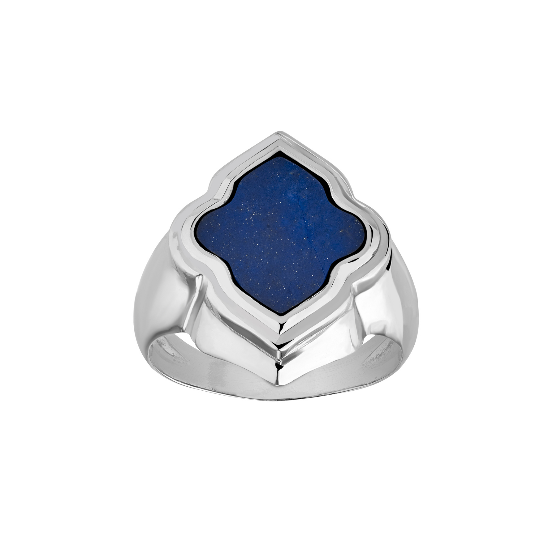 Bague en argent avec une jolie forme en mosaique et lapis lazuli